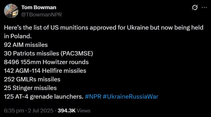 Ρεπόρτερ του NPR αποκαλύπτει ποια αμερικανικά όπλα που προορίζονται για την Ουκρανία βρίσκονται τώρα στην Πολωνία: